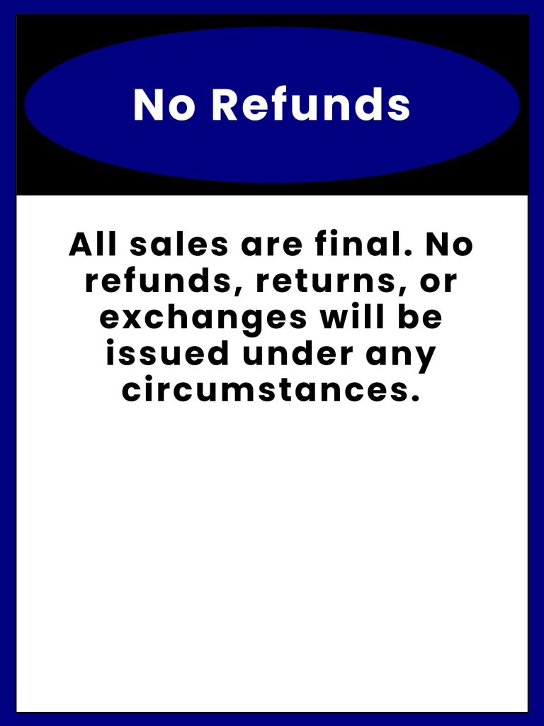 ALL SALES FINAL – NO RETURNS – NO REFUNDS – NO EXCEPTIONS